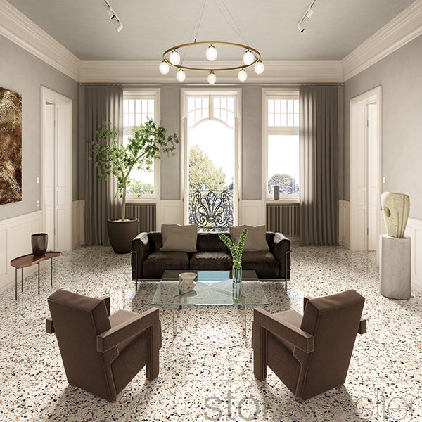 Die Cava Serie gehört zu einer modernen und stilsicheren Kollektion, welche die Terrazzooptik in der zeitgetreuen Architkektur repräsentiert. Beton und Zement spielt eine zentrale Rolle in der Architektur seit vielen Jahr, jedoch noch nie so intensiv wie aktuell. Die Terrazzooptik setzt neue Massstäbe in der heutigen Architektur und die Innenarchitektur setzt deren Charakter in Innenräumen perfekt um. Mausgrau oder kalt ist vorbei, den die aktuellen Feinsteinzeug Fliesen gestalten sich in warmen Farbtönen und einer Unzahl an verschiedenen Designs. Die Kernelemente sind ruhige Farben, puristisches Design und die Grosszügigkeit welche sich in den letzten Jahrzehnten aufgekommenen Industrial und Loft Charakter anlehnen. Wenn man von einem Mega Trend sprechen kann, dann ist es definitiv die Terrazzooptik welche mit purer Ästhetik Akzente setzt. Die Terrazzopoptik gehört zur Familie vom Contemporary Stil, welche sich im Allgemeinen mit verschiedenen Konzepten verbinden lässt, welch die moderne urbane Wohnkultur repräsentiert.