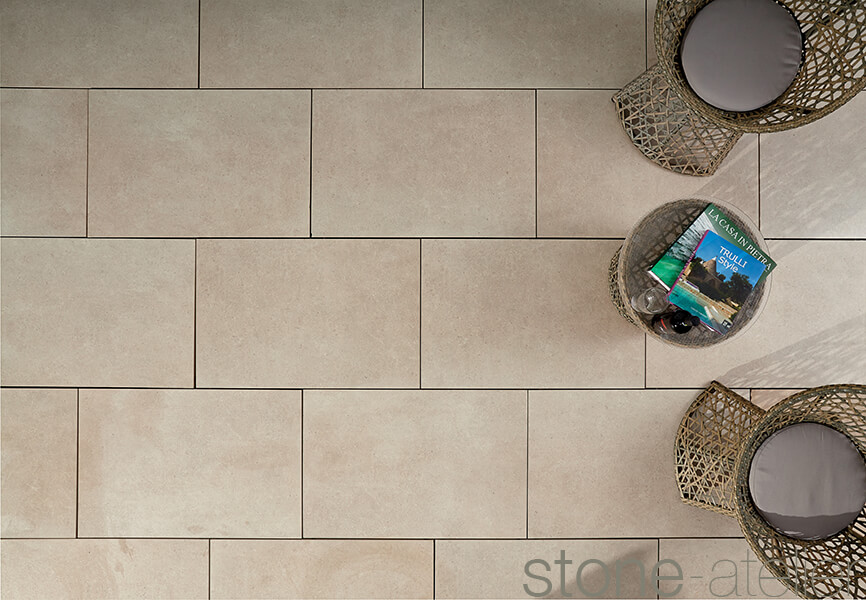Die Serie Kepala bietet die das Maximum an Raum- und Umgebungsgestaltung mit der Lösung von Innen und Aussen Feinsteinzeug Platten. Die identisch gleiche Terrassenplatte gibt es im gleichen und Weiteren Formaten als 1cm Feinsteinzeug Platte für den Innenbereich.
