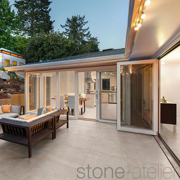 Für den Aussenbereich als Terrassenbelag ist sogleich das Format 60x60x2.00 cm und 90x90x2.00 cm erhältlich.